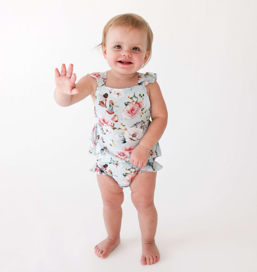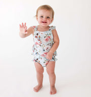 Sunny days are ahead with this adorable ruffled strap bubble romper! Lightweight and made buttery soft with their signature Päpook® viscose from bamboo, this summer outfit is comfy and oh so cute! Featuring an elastic back for an adjustable fit that grows with your peanut and a snap closure for an easy diaper change, this romper is a warm weather must-have!